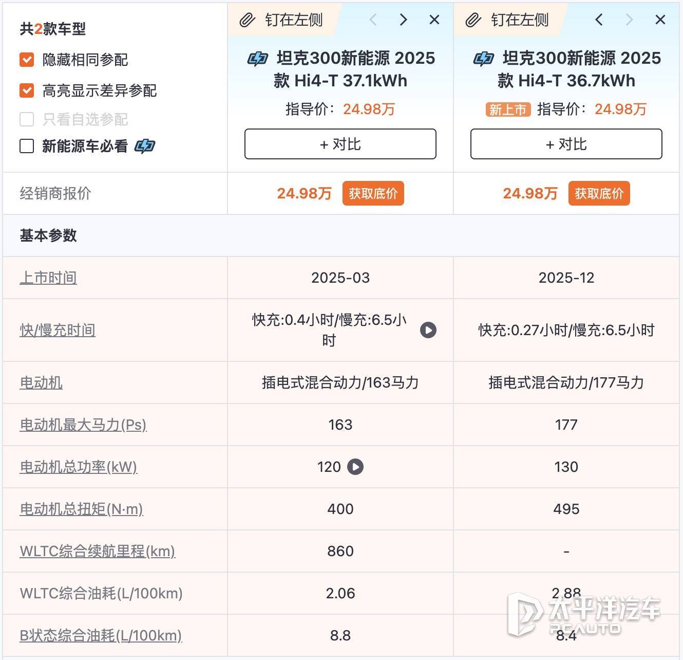 【太平洋汽车 新车频说念】日前,坦克300 Hi4-T新增搭载宁德时期电板的车型,新车售价保握不变,仍为24.98万元。新车能源系统总功率进步10千瓦,同期在充电速率和亏电油耗上有所优化。