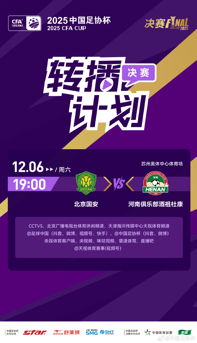 2025 中国足协杯决赛将于 12 月 6 日 19 时在苏州奥体中心打响,北京国安队将和河南队争夺冠军奖杯,这亦然中国干事足球的收官战。到底是河南队动作黑马一黑到底,如故北京国安队演绎权门底蕴复原失地?